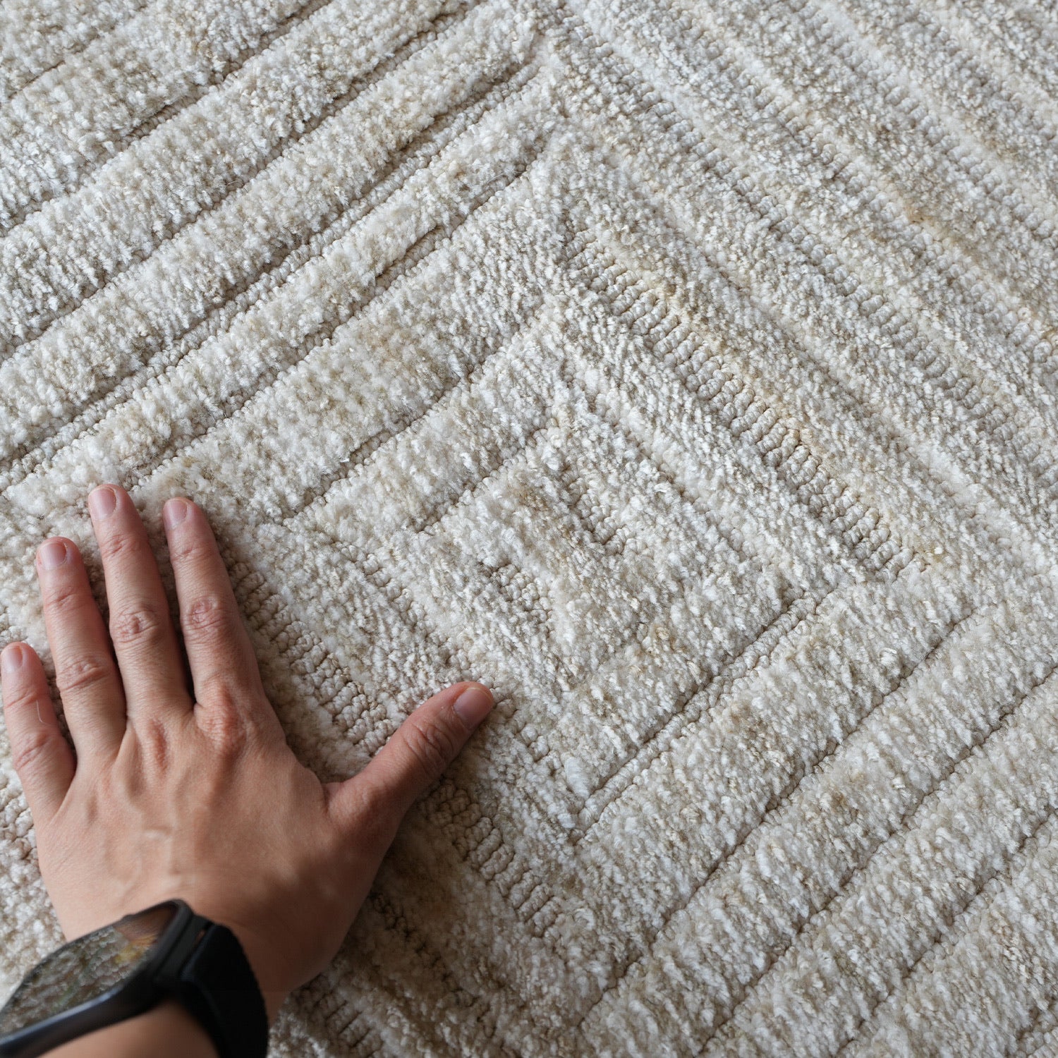 Vacuum regularly. Pile shedding is a normal characteristic of quality area rugs. Avoid use of beater-bar type vacuum as they may cause yarns to pull or snag. If this happens, avoid pulling yarn knots out of surface pile. Use scissors to clip them off even with rug surface. Clean spills immediately by blotting with a clean sponge or cloth. Professionally clean only.