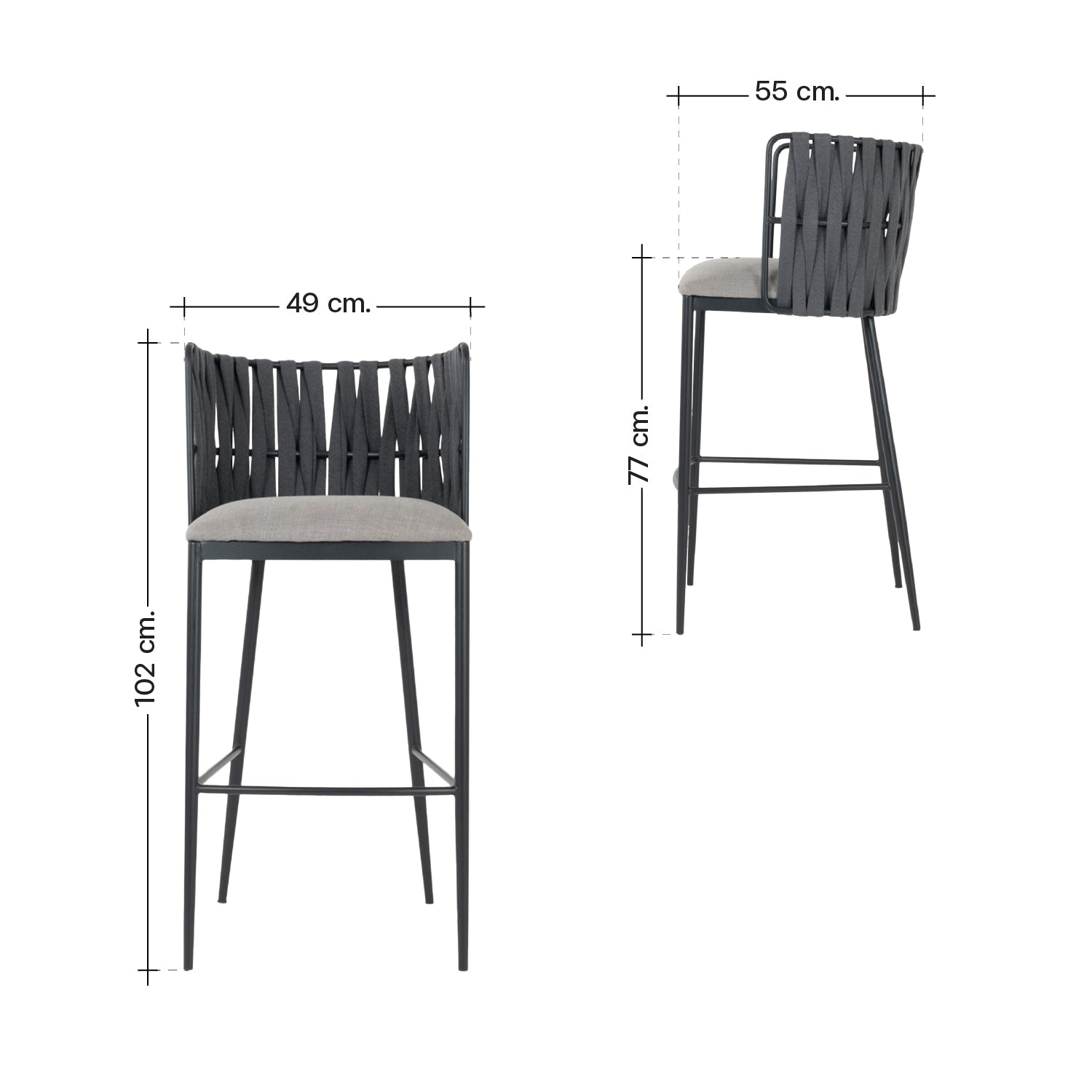 • Frame : Matt black powder coated with armrest