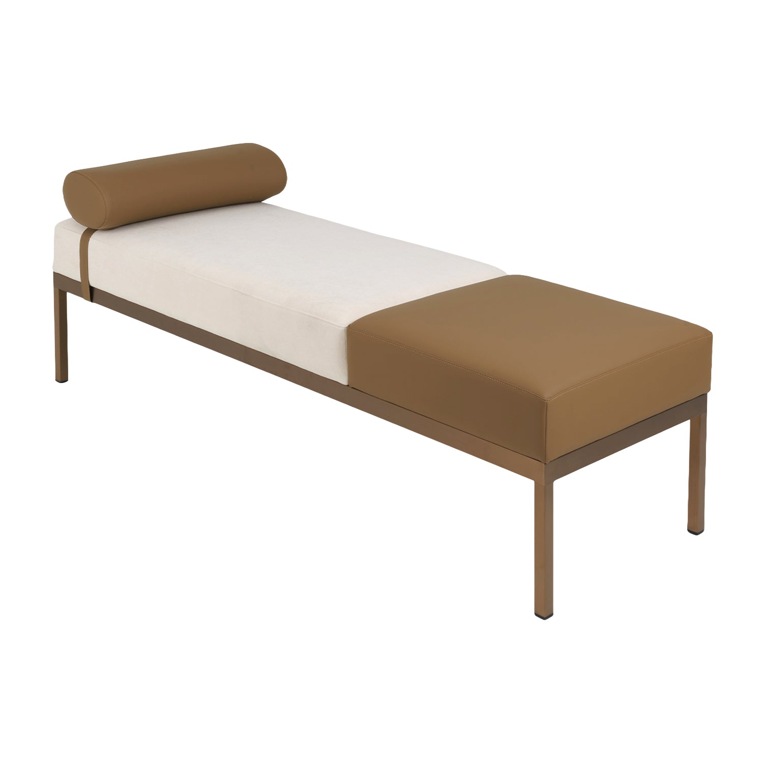 เก้าอี้ม้านั่ง [PN] Bretto Bench White & Brown (Rose Gold Leg)