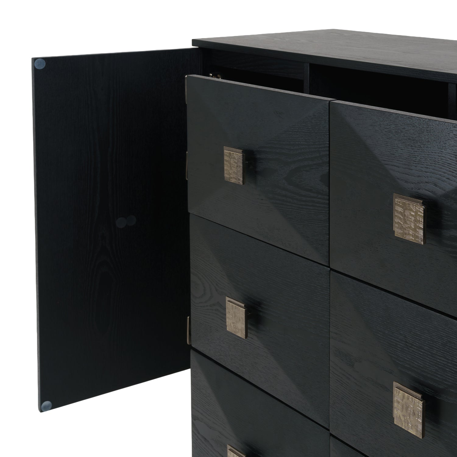 • Frame : Plywood with ash wood veneer, black color (2 doors + 6 drawers)