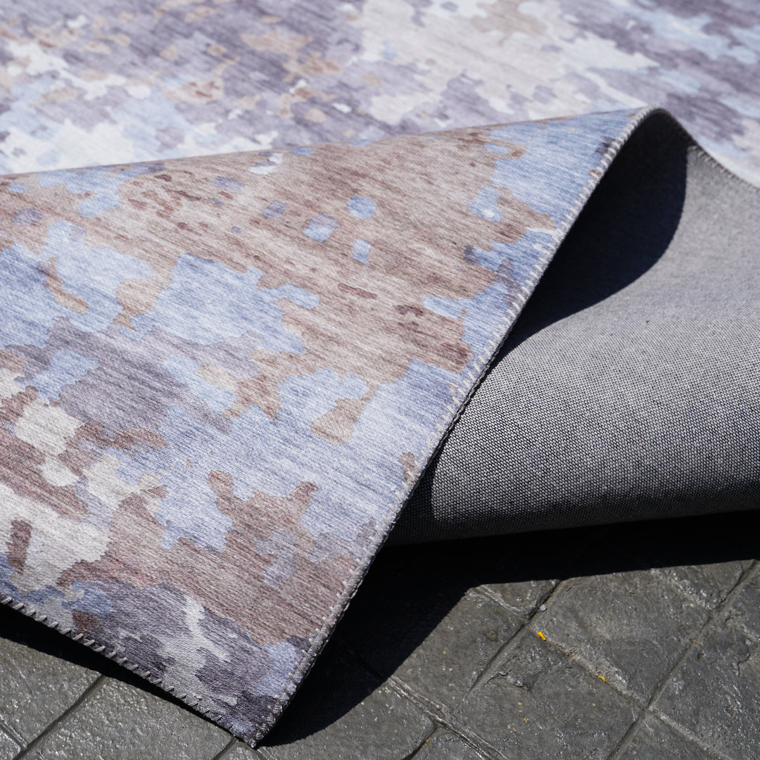 * Rugs can be erosion by clear water and soap, but no hard brush, no hard twist, no spin-dry.
