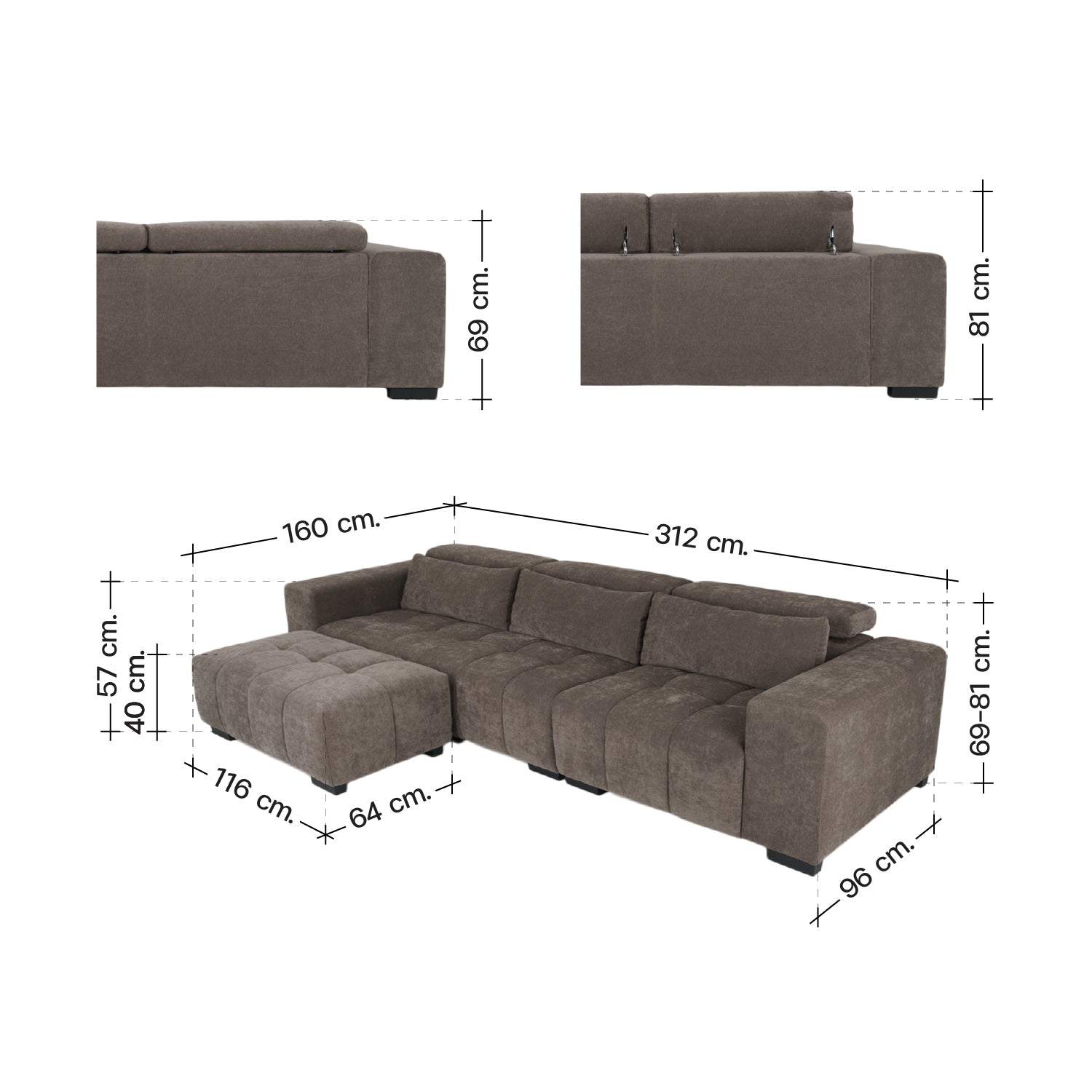 • Box size(Ottoman) : 116x65x37 cm. (N.W. : 15.5kg. / G.W. : 19kg.)